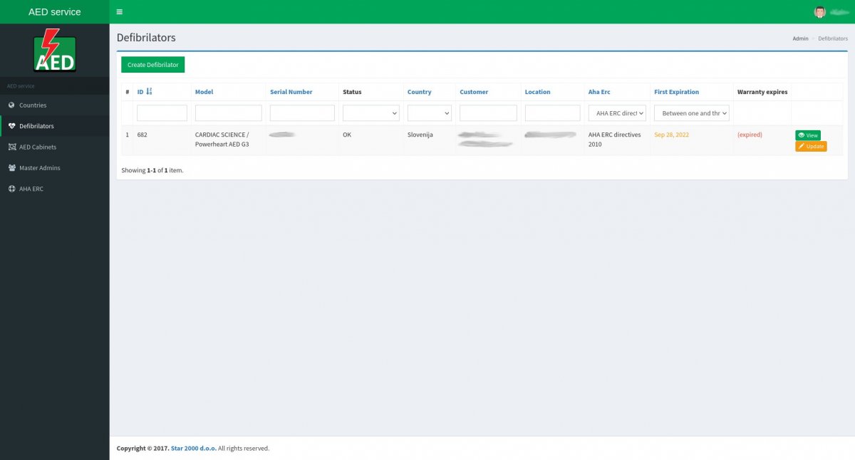Operativni CRM za evidenciju defibrilatora i druge medicinske opreme