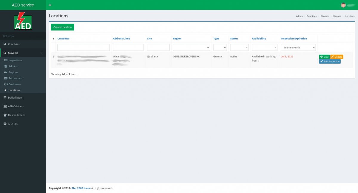 - Praćenje lokacija, statusa i dostupnosti defibrilatora